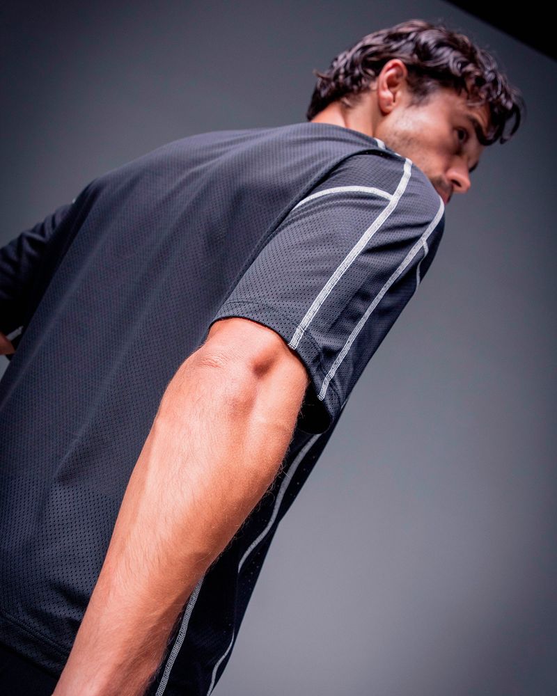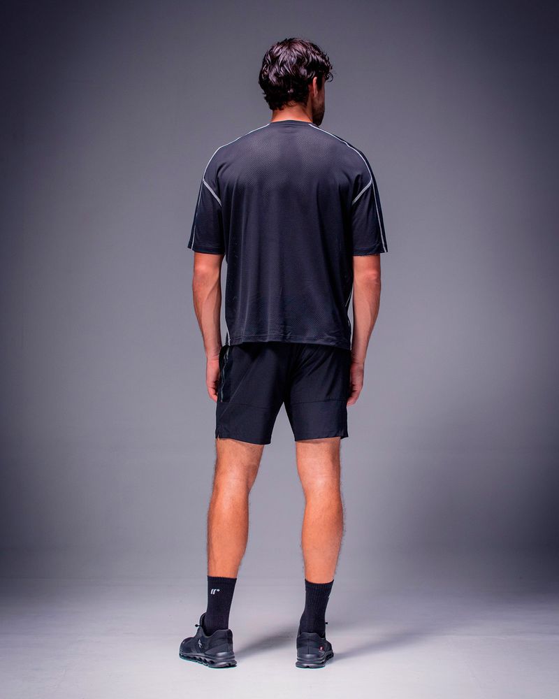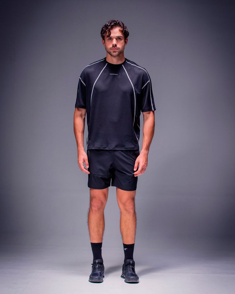 Camiseta deportiva de silueta oversized boxy, con estampado doble en el frente y la espalda. Elaborada en tejido de malla que brinda frescura, cuenta con tecnología antibacterial y secado rápido. Diseño versátil que funciona como prenda casual o deportiva. Perfecta para entrenamientos y uso diario.