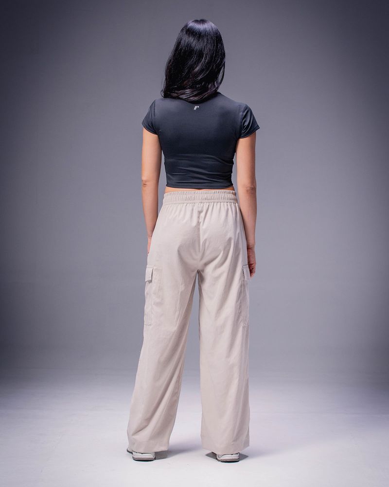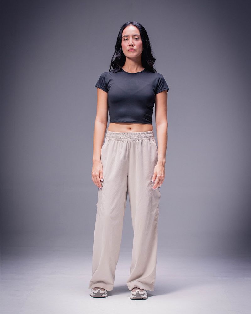 Pantalón cargo mujer bota amplia. Diseñado en una tela con tacto suave, tiene bolsillos funcionales y cordón interno para mejor ajuste. Perfecto para el día a día. Dale ese toque atheisure a tu look y atrévete a combinarla con cualquier prenda superior.