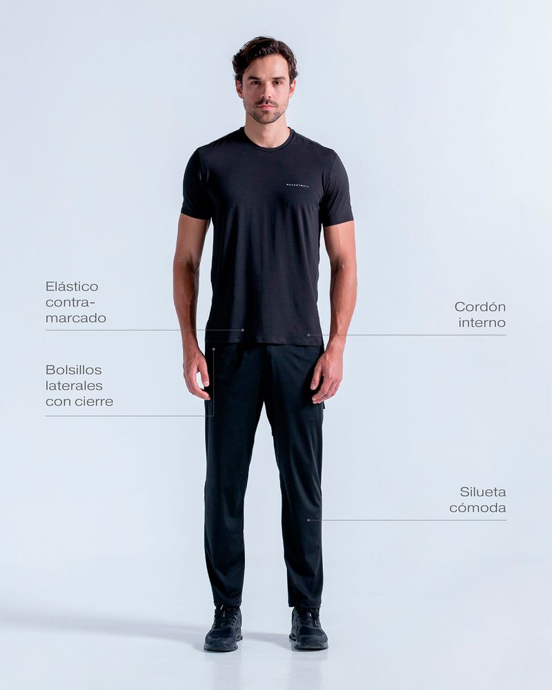 Pantalón Con Pretina En Elástico, Color NEGRO Para Hombre
