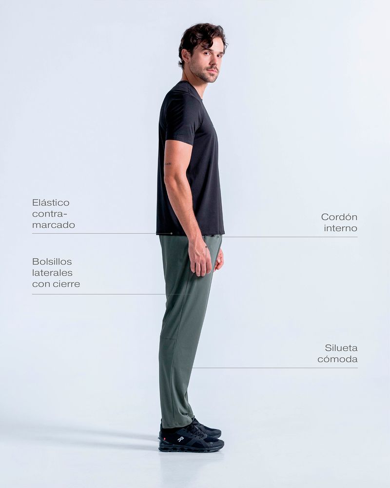 Pantalón deportivo con elástico contramarcado visible y cordón ajustable en la cintura para mayor comodidad. Sus bolsillos laterales con cremallera ofrecen seguridad para llevar lo que necesitas, mientras que los cortes posteriores le aportan un estilo moderno y juvenil.